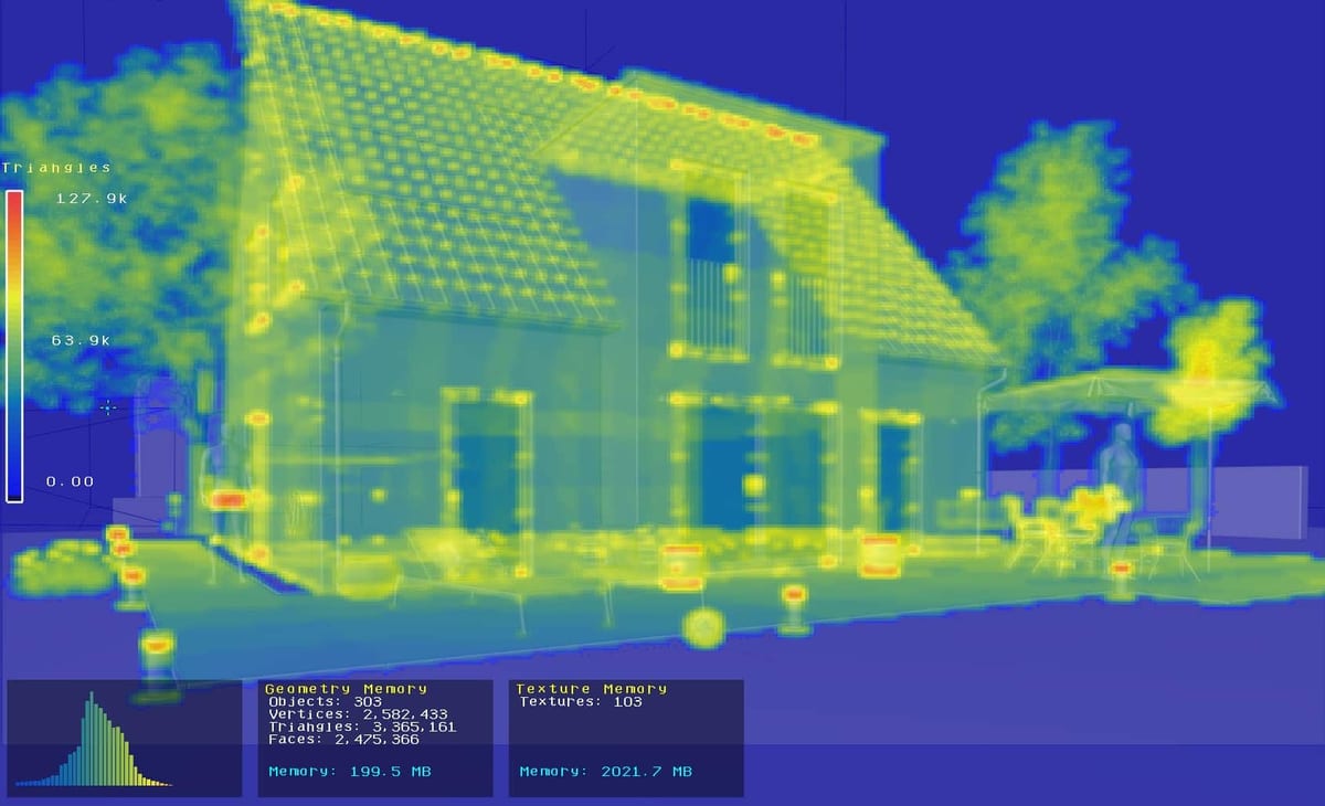 Je größer die sichtbare Fläche und je dichter die Geometrie, desto „heißer“ der Bereich.