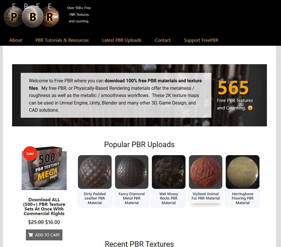 Free PBR ist eine Bibliothek mit über 500 3D-Assets für verschiedene 3D-Design-Plattformen, einschließlich Blender. Dieses Projekt wird von Brian als Ein-Mann-Show betrieben. Obwohl Free PBR kostenlose Texturen und Assets anbietet, gibt es eine kleine Premium-Option für die kommerzielle Nutzung für nur 16 Dollar.